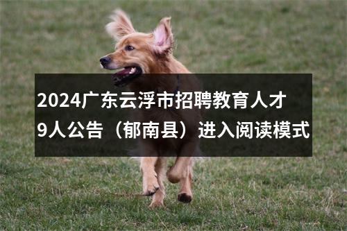 为持续优化本市教育人才队伍结构,2024年,云浮市委、市政府继续组织实施教育人才项目,面向社会公开招聘各层次教育人才,其中郁南县计划引进9名。待拟聘用人员确定后,由郁南县教育局统一分配至全县公办高中。现将有关事项公告如下: