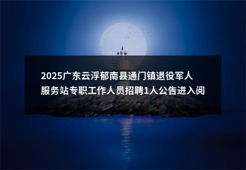 【2025广东云浮郁南县通门镇退役军人服务站专职工作人员招聘1人公告进入阅读模式】相关岗位: