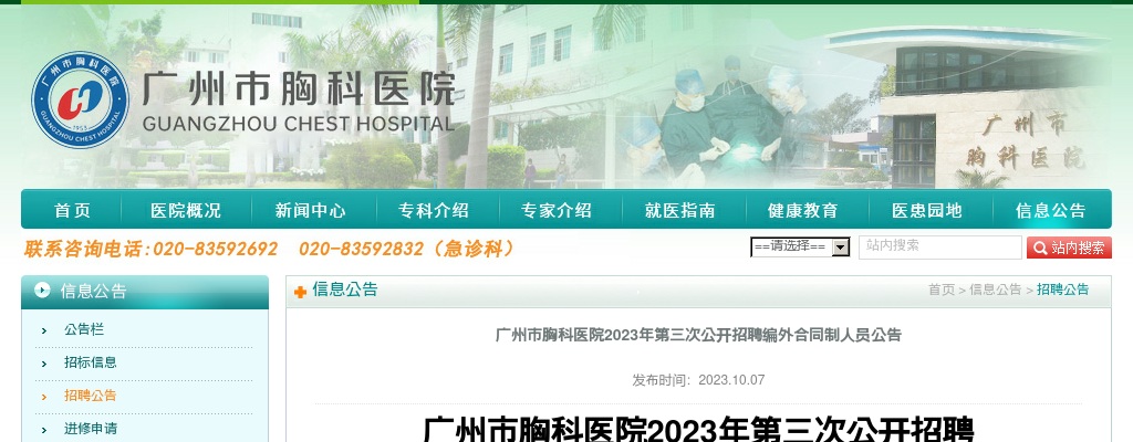 原标题:广州市胸科医院2023年第三次公开招聘编外合同制人员公告