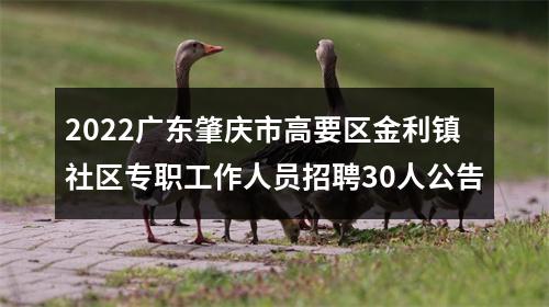 【2022广东肇庆市高要区金利镇社区专职工作人员招聘30人公告】相关岗位: