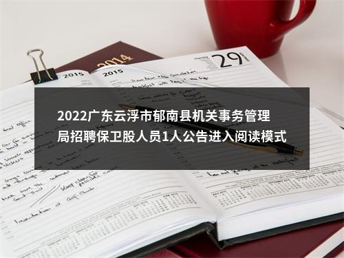 【2022广东云浮市郁南县机关事务管理局招聘保卫股人员1人公告进入阅读模式】相关岗位: