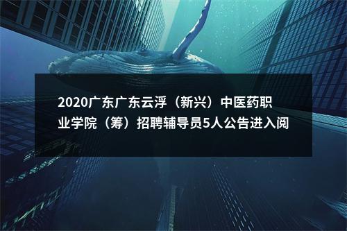 原标题:广东云浮(新兴)中医药职业学院(筹)2020年公开招聘辅导员公告20201030