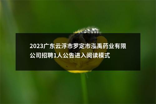 【2023广东云浮市罗定市泓禹药业有限公司招聘1人公告进入阅读模式】相关岗位: