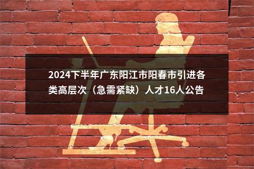 2024下半年广东阳江市阳春市引进各类高层次(急需紧缺)人才16人公告为进一步推进我市高层次人才队伍建设,优化人才队伍结构,根据《广东